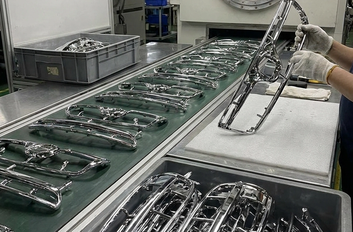 Metallization vacuum metallization for decorative finishes, reflectivity, or conductivity.